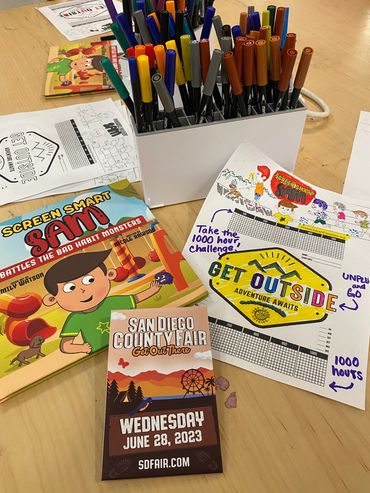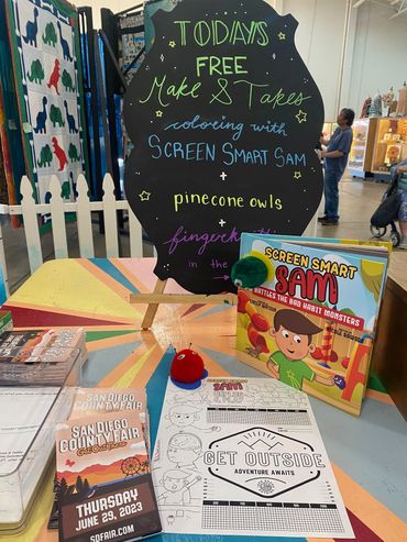 Screen Smart Sam was featured at the San Diego County Fair June 7-July 5th 2023! Children and parents were invited to read, color, & craft embracing this year's Fair theme of "Get Out There" embodied in the spirit of Screen Smart Sam: encouraging kids to unplug & play!